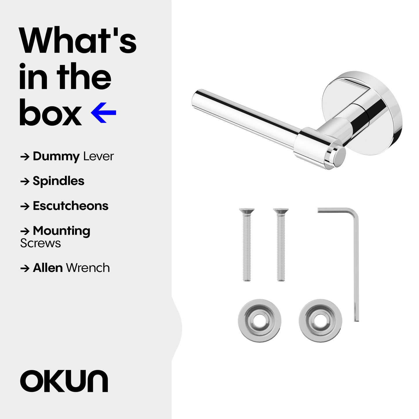 - COMPLETE PACKAGE: Includes dummy lever, spindles, escutcheons, mounting screws, and Allen wrench for complete installation